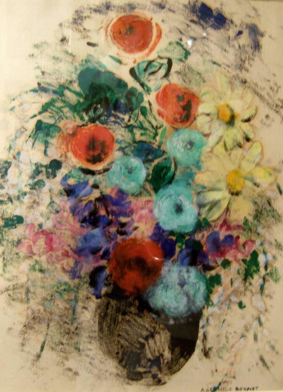 Bouquet tonique et enlevé, riche en couleurs vives et complémentaires. La forme ronde des renoncules rappelle la touche très particulière d'Odilon Redon lorsqu'il peignait des fleurs.